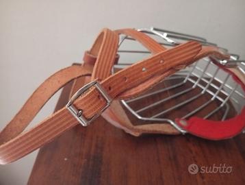 Museruola per cani, cestino per il viso in metallo, guinzaglio in pelle regolabile traspirante adatto per cani di taglia gigante, grande e media 15-50 kg o più, impedisce di mordere, masticare abbaiare. Nuova! Mai usata.