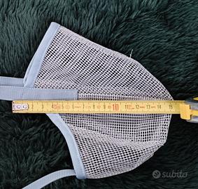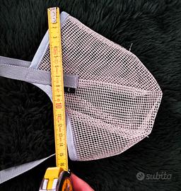 Museruola in rete per cani in materiale traspirante. Permette al cane di respirare e annusare, ma previene abbaio e morso.
