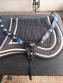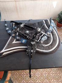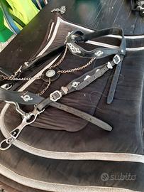 Vendo completo per cavallo testiera pettorale morso spagnolo inox sottosella in tinta nero argento favoloso kit per spettacoli o sfilate..misura full adatto a frisone e Andaluso