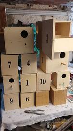 Salve vendo 10 nidi per cocorite in buone condizioni, più 11 di ondulati inglese con cassetto estraibile, in ottime condizioni, più 2 di inseparabili sempre buone condizioni, e poi altri 10 nuovi da assemblare.