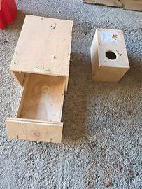 Sono disponibili: 7 nidi per inseparabili o piccoli pappagalli (usati ma senza problemi) 2 nidi per parrocchetto monaco o parrocchetto dal collare (usati pochissimo) 1 nido per Calopsiti (usato una volta)