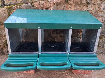 Vendo Nido a 3 posti per galline: h48x80x52,5 Mangiatoia: h45x39