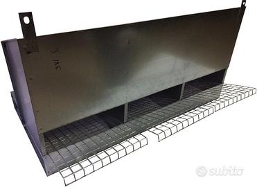 Il cassetto di raccolta delle uova ha il coperchio in lamiera ancorato con anelli che fanno da cerniera e ne consentono l'apertura.