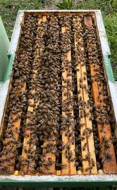- 5 telaini in totale(di cui 2 telai di covata opercolata, 2 telai di covata fresca, 1 telaio di scorte)