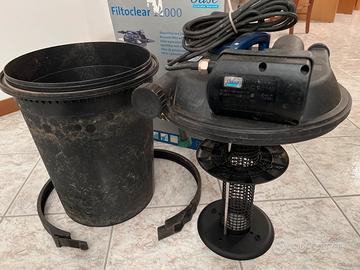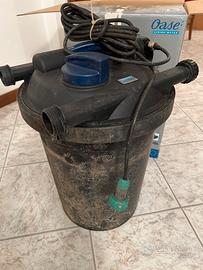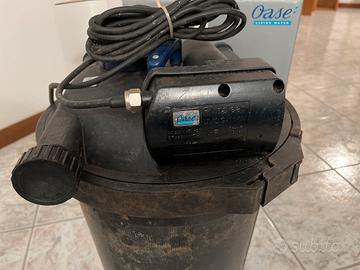 Filtro a pressione per laghetti fino a 11.000 litri, dotato di lampada UVC. Usato ma perfettamente integro e funzionante. Mancano le spugne filtranti (me le ha fatte a pezzi il cane) che si possono trovare senza problemi come ricambi su internet.