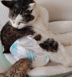 Vendo 10 confezioni da 10 pannolini l'uno per gatti, o cani femmina, taglia XXS. Utili per gatti anziani o gatti che non usano la lettiera. Vanno bene anche per cagnoline di piccola taglia. Vendo possibilmente tutti insieme.