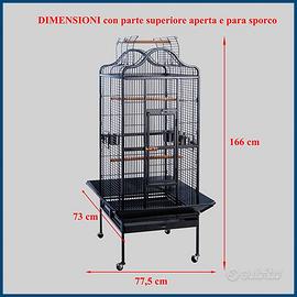 DIMENSIONI Gabbia con parte superiore aperta e para sporco L 77,5 x P 73 x H 166cm
