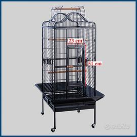 La voliera viene venduta con 3 ciotole in acciaio impermeabili ognuna con la propria apertura estraibile dall'esterno senza doverla aprire completamente, 3 posatoi in legno, 2 da mettere all'interno della gabbia e 1 per tenere aperta la parte superiore.