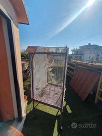 Vendo pappagalliera bicolore, bianco e bordò, ad arco, in alluminio anodizzato, misure 80 x 61 x 115 cm. L'altezza delle gambe, incluse le ruote, è di 41,5 cm rendendo l'altezza totale 156,5 cm. È compresa una lastra di plexiglas doppia per proteggere gli uccelli dalle correnti ventose. L'oggetto è disponibile per il ritiro a Ceprano (FR). Su richiesta del compratore posso spedirlo, per il costo della spedizione dobbiamo accordarci in base al costo del corriere.