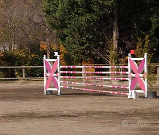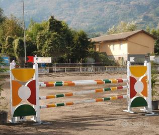 Parco ostacoli C.A.P.E. composto da: - 8 coppie di pilieri - 12 candele - 60 barriere con carrello zincato - 120 ganci in plastica - 35 bandiere rosse - 35 bandiere bianche