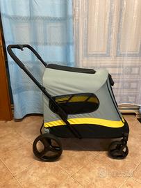 Bellissimo passeggino per cani taglia labrador, nuovo e usato poche volte, come si vede dalle ruote, entrata frontale e retro, apertura sul tettino. Misura : lunghezza 80cm, larghezza 60cm, altezza 60cm.