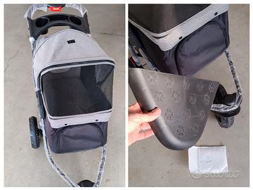Passeggino NUOVO, della PAW HUT, trai TOP di gamma in commercio. Ho preso questo passeggino per portare la mia cagnolina di 5 kg, in un Trekking, poi non più fatto visto che la mia pelosetta è peggiorata di salute. È ancora praticamente imballato, l'ho montato perché volevo testarlo e mi è piaciuto sin da subito, agile, scattante e leggero... mi brillavano gli occhi nello spingerlo in casa e sinceramente un pochino mi spiace venderlo perché è "fighissimo"... ma purtroppo non lo userò più. Ho ancora scatola originale. Passeggino per Cani/Gatti (Piccoli e Medi di massimo 10-12kg). Per le MISURE vedi foto allegate! Si può usare anche per Jogging o Trekking, molto comodo,le 3 Ruote (pneumatici in EVA) girano molto agilmente, per fare delle belle e comode passeggiate con il tuo amato pet. •Adattabilità a Tutti i Terreni Il passeggino a 3 ruote per cani affronta ogni percorso con una ruota anteriore universale e 2 ruote posteriori bloccabili, abbinate a un pratico freno a pedale singolo, garantendo una scorrevolezza sicura e fluida da asfalto a erba, ghiaia o dossi. •Comfort Arieggiato Il passeggino per cani vanta lati in rete traspirante, inclusi un oblò superiore, una porta anteriore con cerniera e una finestra posteriore in rete per aumentare il flusso d’aria e il comfort. •Design Pieghevole con Un Clic Il passeggino da jogging si piega con una sola mano. Questa caratteristica comoda rende l’archiviazione e il trasporto semplici, perfetta per i padroni di animali in movimento. •Costruzione Affidabile Il passeggino per gatti è realizzato con robusto tessuto oxford è una solida struttura in metallo. •Caratteristiche Convenienti è dotato di guinzaglio di sicurezza, cuscino imbottito rimovibile per maggior comfort, cestino portaoggetti inferiore e 2 vani porta acqua. > ritiro solo di persona (possibile testarlo). > non spedisco. > pagamento alla consegna. NON VENDO A DISTANZA-NON SPEDISCO Per invio altre foto contattatemi sulla messaggistica di subito.