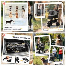 Passeggino NUOVO, della PAW HUT, trai TOP di gamma in commercio. Ho preso questo passeggino per portare la mia cagnolina di 5 kg, in un Trekking, poi non più fatto visto che la mia pelosetta è peggiorata di salute. È ancora praticamente imballato, l'ho montato perché volevo testarlo e mi è piaciuto sin da subito, agile, scattante e leggero... mi brillavano gli occhi nello spingerlo in casa e sinceramente un pochino mi spiace venderlo perché è "fighissimo"... ma purtroppo non lo userò più. Ho ancora scatola originale. Passeggino per Cani/Gatti (Piccoli e Medi di massimo 10-12kg). Per le MISURE vedi foto allegate! Si può usare anche per Jogging o Trekking, molto comodo,le 3 Ruote (pneumatici in EVA) girano molto agilmente, per fare delle belle e comode passeggiate con il tuo amato pet. •Adattabilità a Tutti i Terreni Il passeggino a 3 ruote per cani affronta ogni percorso con una ruota anteriore universale e 2 ruote posteriori bloccabili, abbinate a un pratico freno a pedale singolo, garantendo una scorrevolezza sicura e fluida da asfalto a erba, ghiaia o dossi. •Comfort Arieggiato Il passeggino per cani vanta lati in rete traspirante, inclusi un oblò superiore, una porta anteriore con cerniera e una finestra posteriore in rete per aumentare il flusso d’aria e il comfort. •Design Pieghevole con Un Clic Il passeggino da jogging si piega con una sola mano. Questa caratteristica comoda rende l’archiviazione e il trasporto semplici, perfetta per i padroni di animali in movimento. •Costruzione Affidabile Il passeggino per gatti è realizzato con robusto tessuto oxford è una solida struttura in metallo. •Caratteristiche Convenienti è dotato di guinzaglio di sicurezza, cuscino imbottito rimovibile per maggior comfort, cestino portaoggetti inferiore e 2 vani porta acqua. > ritiro solo di persona (possibile testarlo). > non spedisco. > pagamento alla consegna. NON VENDO A DISTANZA-NON SPEDISCO Per invio altre foto contattatemi sulla messaggistica di subito.