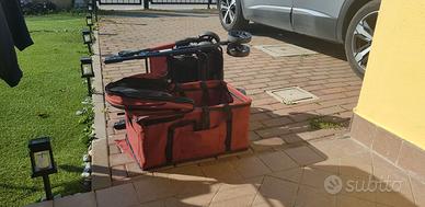 Passeggino rosso marca LOVPET per cani 2 in 1. Borsa pieghevole per trasporto cani fino a 20 kg. Carrello con finestre a rete e parapioggia/sole. Peso totale lg. 7,4
