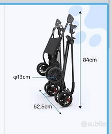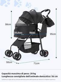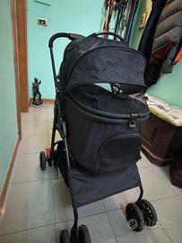 Passeggino per cani, fino a 20 kg, 4 paia di ruote doppie a 360°. Usato un paio di volte, è molto comodo da aprire e richiudere ed occupa pochissimo spazio in auto.