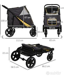 passeggino per cani pieghevole, taglia media, super comodo. con ruote che si staccano, praticamente nuovo,