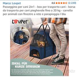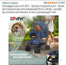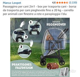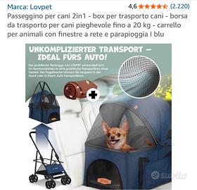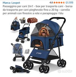 Passeggino per cani anziani taglia piccola. Mai utilizzato ancora chiuso nel cartone originale. Completo di tutti gli accessori forniti dal venditore come indicato nelle foto del catalogo