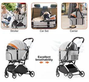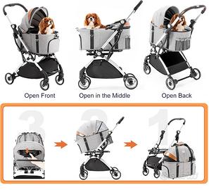 Meraviglioso passeggino per cani sfoderabile con ovetto staccabile che si puo usare in auto o in viaggio.