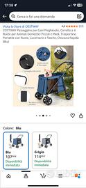 vendo passeggino per cani pieghevole ,come nuovo usato 2 volte prezzo 80€ .