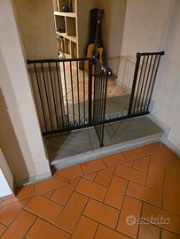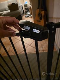 3 Estensioni con larghezza regolabile fino a 147.5 cm. Cancello con Fissaggio a pressione senza fori e chiusura automatica. Prezzo nuovo: 59,95 € Comprato per piccolo Labrador, molto solido e stabile. Per errore me ne hanno inviati 2, uno l'ho installato e l'altro lasciato nella scatola. Purtroppo la mia canina è una piccola peste ed ha distrutto la confezione come potete vedere. Comunque dentro é nuovo ed ancora sigillato.