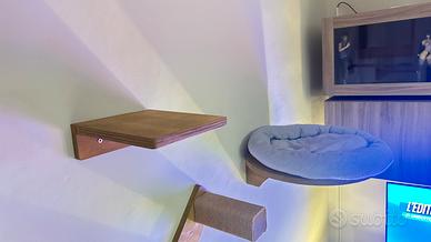 Vendo percorso artigianale per gatti in abete (legno piu resistente per questi lavoro) verniciato in giallo. Comprendivo di viti di ancoraggio. Usato 2 mesi, vendo causa inutilizzo. Realizzato da “l’angolo dei gatti” professionista del mestiere. Valore commerciale 400€