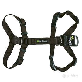 Pettorina ad H morbida dotata di anello frontale e di anello inferiore ampiamente regolabile con inserti riflettenti per la visibilità notturna e rifinita con nuovo logo in gomma 3D.