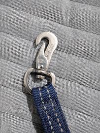 Pettorina più guinzaglio Haqihana taglia M in buonissime condizioni come da foto, unica pecca uno dei due moschettoni del guinzaglio (foto allegata) è da sostituire perché non si chiude, l'altro funziona perfettamente.
