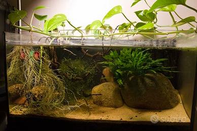 Il Pothos, grazie alle sue radici è un ottimo riparo per i pesci di piccola taglia, Inoltre è in grado di assorbire una quantità enorme di inquinanti e di conseguenza, di portare valori eccezionali in vasca.