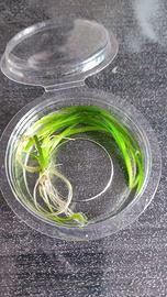La Vallisneria è fatta da foglie lunghe anche fino a 50cm, che raggiunta la superficie continuano a crescere a pelo d' acqua. E' velocissima nella crescita e nella riproduzione, non necessita di co2 o di luce particolarmente intensa, può essere fertilizzata.