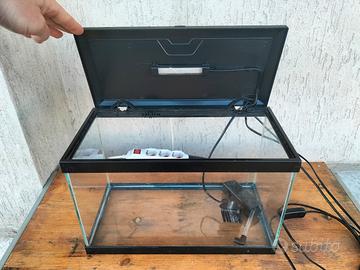 In vetro marca ciano, dimensioni base 40 x 20, altezza 24 circa, completo di pompa e luce led. Dovrebbe esserci anche il trasformatore per il led, se non lo trovo il prezzo scende
