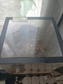Per inutilizzo vendo piccolo acquario quadrato, capienza 8litri, coperchio artigianale. Radice inclusa e se si vuole anche talee di anubias da poter ancorare. No luce, no filtro. Usato, alcuni graffi.