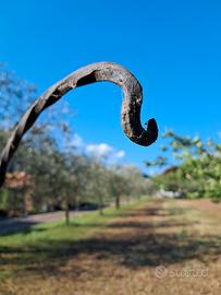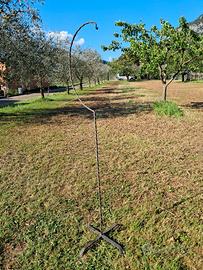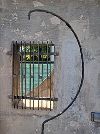Supporto in ferro battuto per gabbietta uccellini o per vaso. Vintage. Il metallo è in buono stato, basta una mano di vernice per rinfrescarlo. Riyiro a mano.