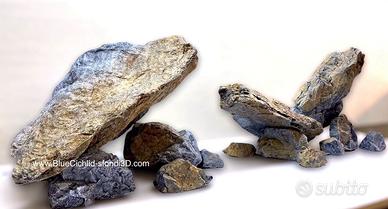 14 Pietre in resina, cave, di varie forme e dimensioni - Blue ciclid misure varie