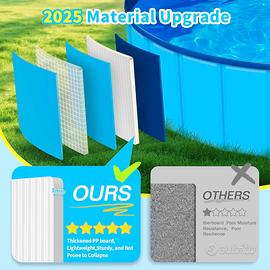 Rispettoso dell'ambiente e robusto: Il materiale è ecologico, adottato materiale PVC premium sicuro e non tossico, resistente al tempo, antigraffio! Le tavole di legno di compressione ad alta resistenza da 0,45 cm incorporate, rendono l'intera piscina più robusta, non collassano!