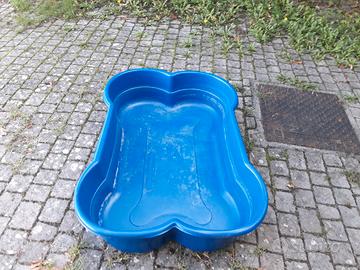 Vendesi causa trasloco, piscina per cani a forma di osso. Dimensioni: 120 cm x 25 cm x 80 cm, ottimale per cani dalla piccola alla grossa taglia. Materiale solido in robusta plastica, resistente a graffi e morsi; bordo fisso.