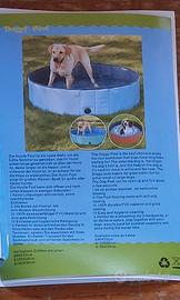 Vendesi piscina ripiegabile rotonda, diametro 160 cm, H 30 cm facile e veloce da piazzare, ideale x cani e altri animali, utilizzabile anche per fare il bagno al vostro animale, + tappeto rinfrescante con getti d'acqua, posizionandolo primail tappeto e sopra la piscina,essendo di diametro piu ampio, nella parte eccedente la circonferenza, vi sono diversi getti che spruzzano in alto l'acqua ricadende addosso a chi è dentro la piscina rinfescandoli fornito di adattatore a fontana di casa il tutto nuovo mai usato in perfette condizioni, e nella confezione originale il prezzo è riferito a piscina + tappeto