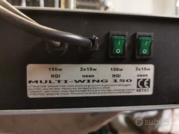 Vendo plafoniera per acquario (principalmente usata su un mini reef) elos multi wing 150, condizioni buone, lampade neon e HQI da sostituire.