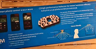 Plafoniera professionale 148W per acquario marino, colore nero, programmabile via app.