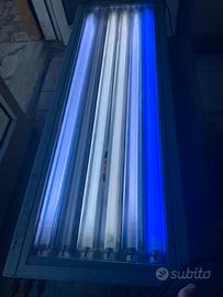 Vendo plafoniera per acquari sia acqua dolce che salata, marca BLAU neon t5 2gradazioni di bianco ed 1 blu piu luce led blu notturna, con 3 ventole per l’eventuale raffreddamento che si accendono separatamente