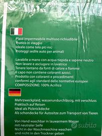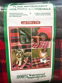 Vendo come da foto nuovo Plaid scozzese impermeabile multiuso richiudibile e con una pratica maniglia per il trasporto. Misura 150 × 130 cm.
