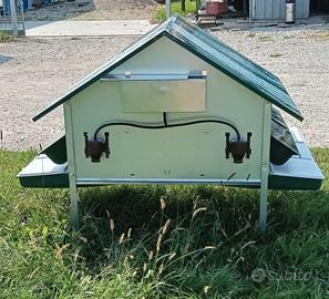 dotato di beverini a livello costante e si mangiatoie con protezione anti pioggia.