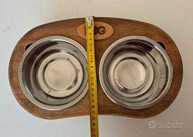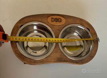 Vendo porta ciotole per cani con 2 ciotole nuove in acciaio.
