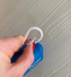 porta sacchetti monge per cani blu, con moschettone bianco. Mai utilizzato, ancora del tutto nuovo e intatto.