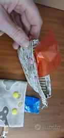 Porta sacchetti per cani, fatti a mano, varie fantasie, con gancio per attaccarlo al guinzaglio. Molto resistente e pratico. Compreso sacchetto