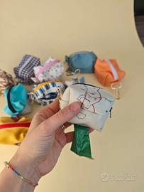 Porta sacchetti spazzatura animali. Con gancio Fornito di chiusura lampo e foro posteriore. Fantasia mista della stoffa. Fatto a mano