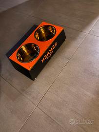 Portaciotole animali rialzato, per una migliore deglutizione, con piedini in gomma antiscivolo, “non si porta in giro le ciotole per tutta casa” e antigraffio, per chi ha il parquet.