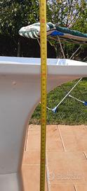 Vendo portagabbia per volatili colore azzurro ghiaccio con ruote h 72 cm Lunghezza 42.5 cm larghezza 24 cm