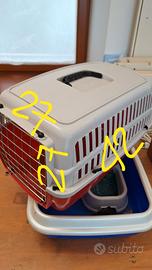 Portantino per gatto di media taglia e regalo lettiera e accessori con spazzola sfoltisci pelo. Foto con misure e dettagli. Usato. Vendo tutto quello che cè in foto. Se devo spedire e imballare il prezzo è quello se lo ritirate di persona togliete 5 euro.
