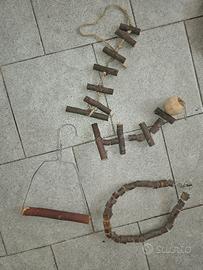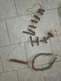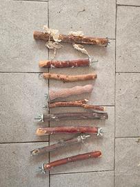 Posatoi e giochi artigianali per pappagalli. Preferibile ritiro in blocco