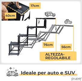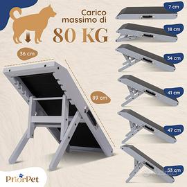 ALTEZZA REGOLABILE: 53, 47, 41, 34 e 18 cm. L'altezza può essere adattata a un divano, un letto o un'auto. La scaletta per cani si piega piatta fino a soli 7 cm di altezza per un facile stoccaggio/trasporto.